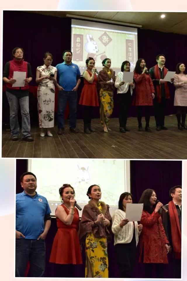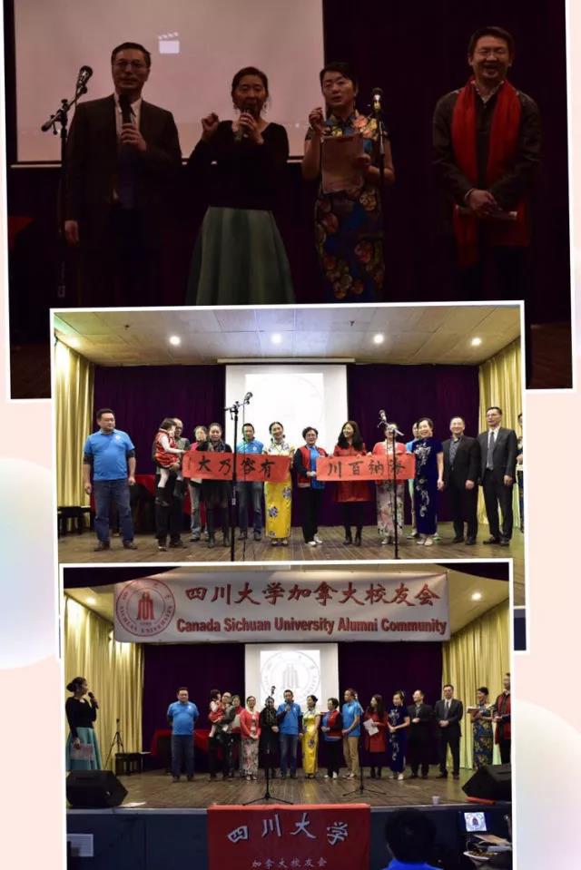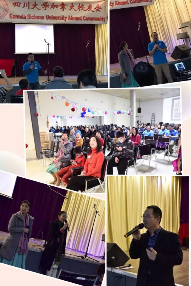 会场气氛热烈而温馨,川大加拿大校友会英语学习群合唱的《恭喜恭喜》和《新年好》使会场充满年味。