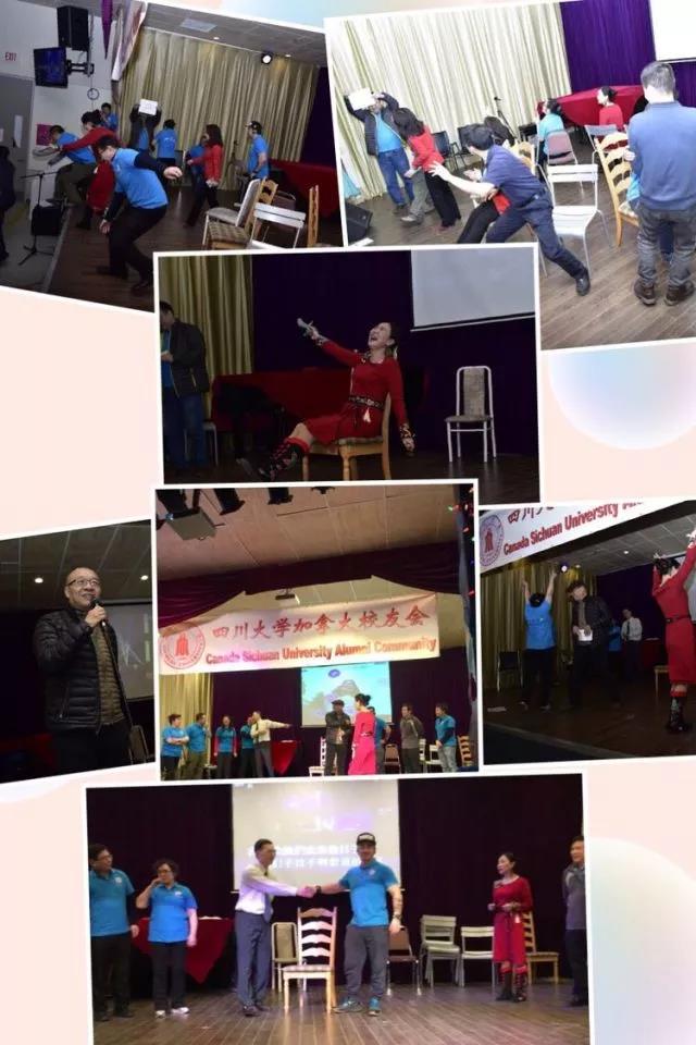 川大加拿大校友会合唱团在团长Paul Cheng 的带领下为川大校友们一展歌喉。Paul的一首《You Raise Me Up》让我们联想到母校川大使学子们得以攀登高峰,做最好的自己。《贝加尔湖畔》让人们回忆起流逝的青春和曾经的浪漫。 一曲《绒花》带你走近青葱岁月,坚韧而顽强的精神年代。《同一首歌》温暖的共鸣,美好的情感。《狼图腾》如奔放的骏马,恣意驰骋在辽阔的草原。改写版《美酒加咖啡》表达了在其乐融融的联欢气氛中,共饮咖啡美酒的欢快心情。川大版《刘三姐》拉歌使联欢会高潮迭起,你来我往,整个会场飘荡着欢乐的空气。