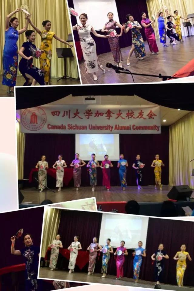 川大加拿大校友会旗袍队的姐妹们在《黄鹤楼》的悠扬乐曲中,身着或淡雅,或热烈的修身长款旗袍,缓缓走来,靓丽而优雅地体现了川大人的自信和自豪。
