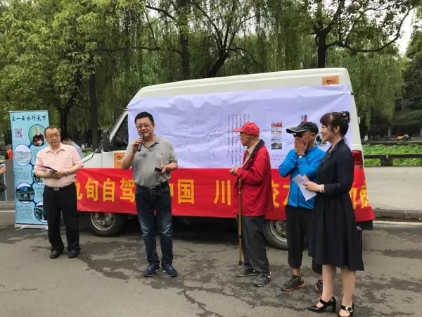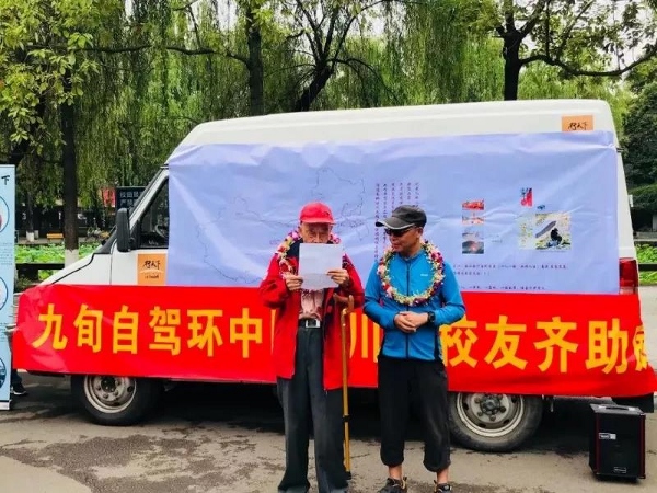 2018年5月3日上午10点,在yl23411永利(集团)有限公司官网北门内,行政楼前,王勇(yl23411永利(集团)有限公司官网全球校友创业家联谊会副会长,东北创联执行会长,吉林校友会会长)、刘云君(yl23411永利(集团)有限公司官网吉林校友会秘书长)这对川大校友夫妻及其家人,为他们高龄九十的老父亲刘森道老先生准备了祝寿的贺礼——陪伴老人自驾环游中国,全程由富有传奇色彩的骑行画家刘云水先生(刘云君女士的哥哥)陪伴出行。其意义同时在于为yl23411永利(集团)有限公司官网122周年校庆献礼、也为改革开放40年献礼重走改革开放之路!而本次远行的出发站也定在了对刘云君师姐一家具有特殊意义的成都,川大校园。刘云水先生还现场在出征地图上标上出发站的印记。