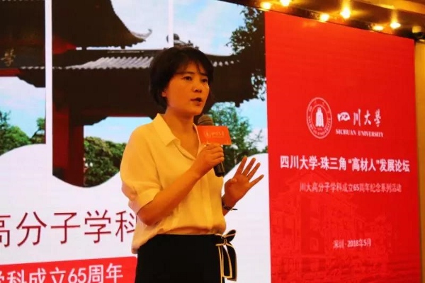 校党委副书记敬静出席论坛并发表讲话。她首先高度肯定了川大高分子学科65年来在人才培养、科学研究和成果转化等方面为学校、社会和国家作出的贡献。随后,她向与会校友详细介绍了学校 “办最好的医科,办一流的文科、理科和新工科”的发展思路以及“文优—理进—工改—医强”的川大路径。她表示,川大高分子学科要与广大校友一起相互支持、共谋发展,努力把高分子学科建设成为川大“新工科”的样板,让“高材人”成为川大学子的标杆。高分子学科广大师生和校友要凝聚共识、开拓创新、锐意进取,为实现学校第八次党代会提出的“全面推进建设具有中国特色、川大风格的世界一流大学新的伟大事业”的目标而奋斗。 论坛上,高分子科学与工程学院院长傅强作了题为“奋进中的川大高分子学科”的报告;杨伟教授、吴宏教授就学院和国家重点实验室的学术研究成果向与会企业、校友作了介绍;黄锐教授分享了川大高分子发展的历史;招生就业处代表和学院相关负责人与部分企业代表、校友围绕招生就业工作进行了交流。王跃林、刘科在代表川大高分子校友发言中表示:母校是校友们最坚定的依靠,10000余名川大“高材人”愿意一起为学校发展和川大高分子学科建设做出贡献。杰出校友傅轶、孙难见等也先后作了精彩的交流发言。