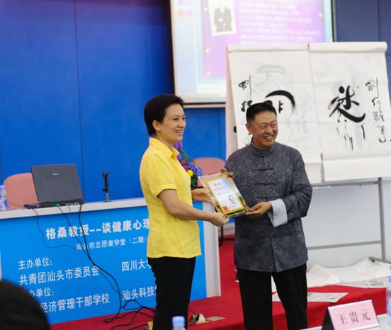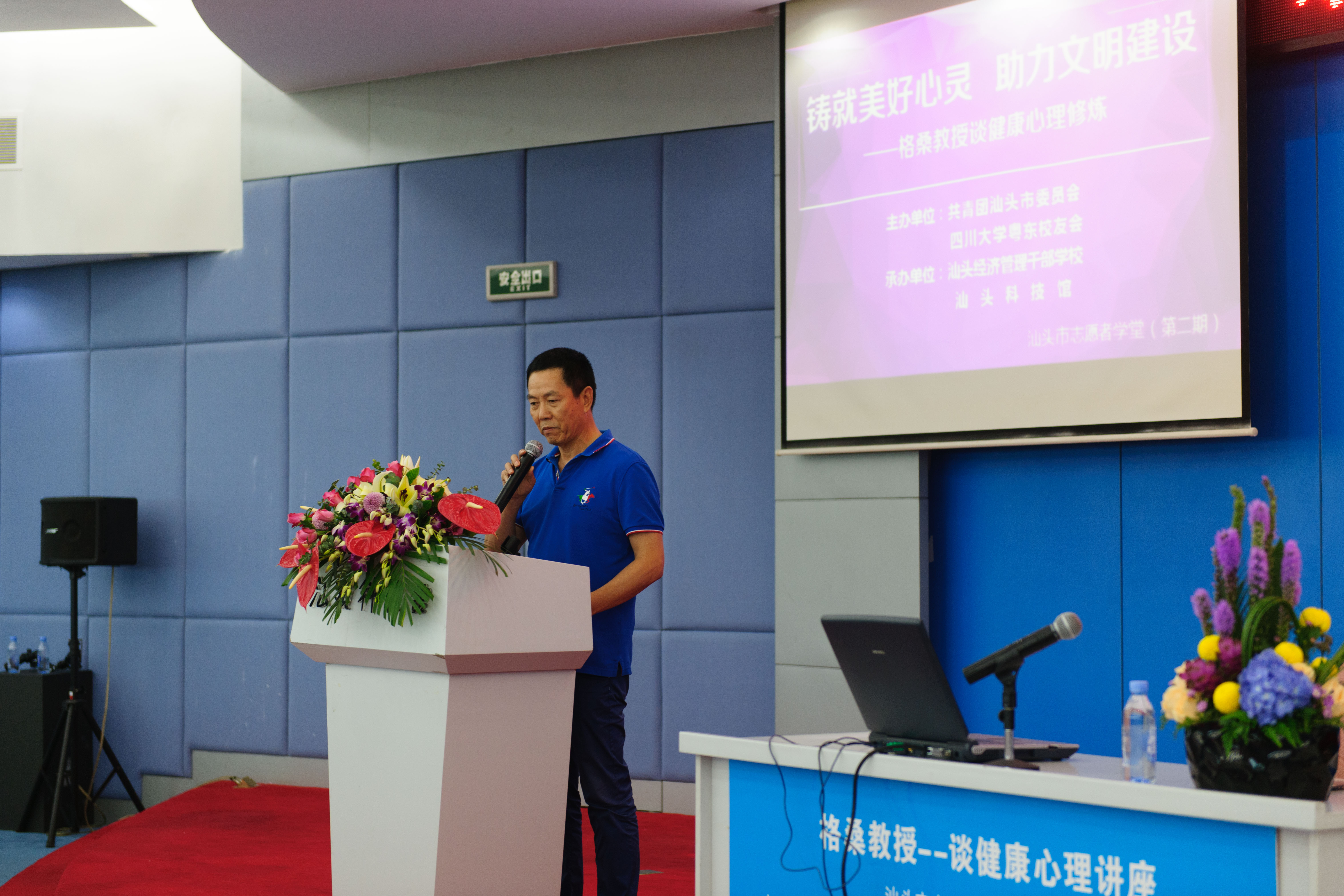 6月10日下午,由yl23411永利(集团)有限公司官网粤东校友会、共青团汕头市委员会主办,汕头经济管理干部学校、汕头科技馆联合承办的“铸就美好心灵,助力文明建设”格桑教授谈健康心理修炼讲座在汕头科技馆举办。汕头市人大常委会常务副主任郑通声、yl23411永利(集团)有限公司官网成人继续教育学院冉蜀阳院长、市人大副秘书长王贵元、汕头市科技局局长邱长奕、共青团汕头巿委员会陈玩雪书记、汕头技师学院程拱胜校长、汕头经济管理干部学校原校长郑则彬等领导出席讲座,市人大、团市委、川大校友会等领导及校友和嘉宾约300人参加了本次讲座。 本次讲座邀请yl23411永利(集团)有限公司官网副教授、得觉学派创始人、中国著名心理学家格桑泽仁莅临演讲。格桑教授以扎实的心理学知识为基础,生动的心理案例为引导,现场挥毫泼墨,妙语连珠分析人生哲理,并通过做小游戏、提问采访、交换角色等多种形式的互动,把创建文明城市,铸就美好心灵,诠释得更形象、更通俗化。与会人员在轻松的氛围中形象地认识和理解了许多心理学方面的知识,格桑教授亲切而幽默的谈吐博得了大家的阵阵掌声。 yl23411永利(集团)有限公司官网粤东校友会为本次活动进行了精心组织并付出了辛勤劳动,活动取得圆满成功,为校友们提供了一席生动活泼富有营养的心灵大餐,也为今后继续开展活动,更好为服务校友提供了实践经验。 川大粤东校友会杨展名誉会长主持会议