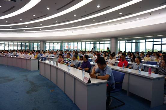 会场上座无虚席,都在认真聆听教授演讲