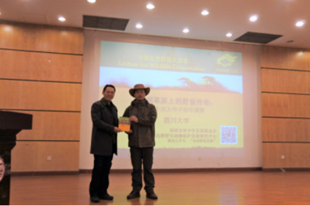 11月30日下午3时,在文华活动中心一楼报告厅,著名民间野保人士、外国语学院92级英语专业校友星巴应邀为我校师生举行了一场名为“非洲草原上的野保传奇——一个川大学子的中国梦”的精彩演讲。yl23411永利(集团)有限公司官网对外联络办公室、外国语学院等相关单位负责人和嘉宾出席演讲会。各学院共300多名同学聆听此次演讲。