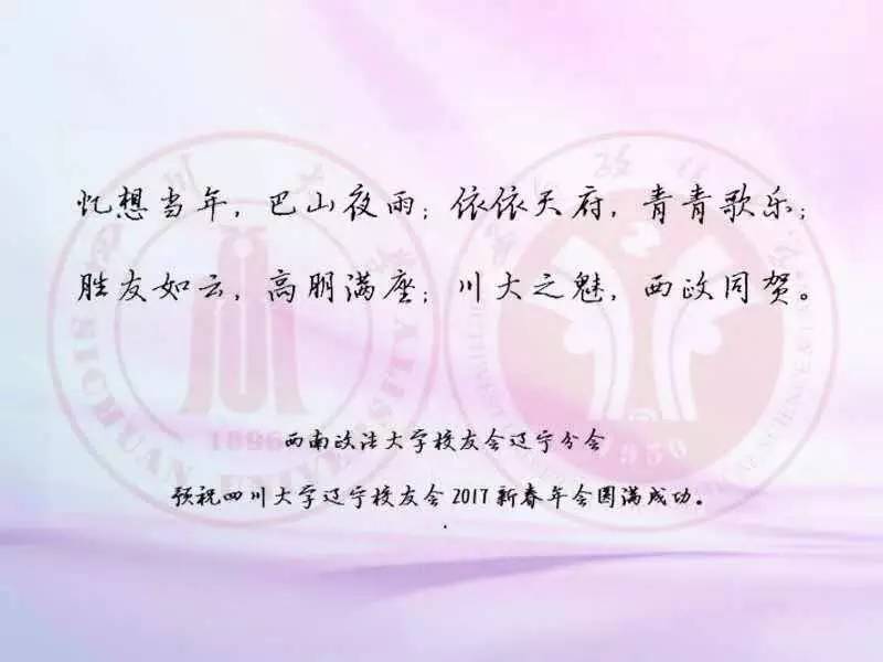此次年会全程由校友们策划、组织、编排,演绎,在此过程中,大家收获的不仅是欢乐,还感受到了浓浓的川大情怀。辽宁校友会借此年会,祝全球川大人新年快乐——“学习、生活万事顺意,工作、生意红红火火!”