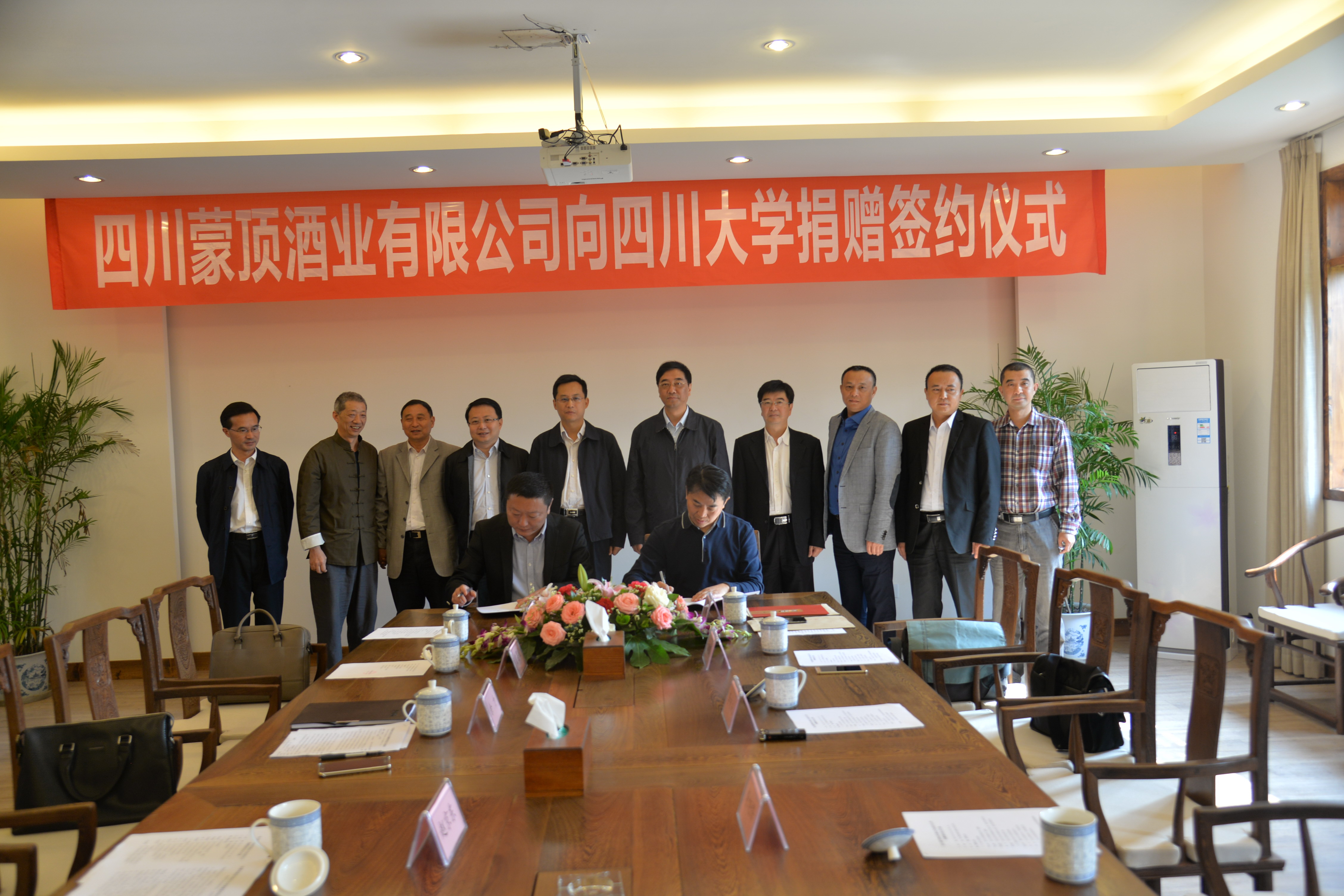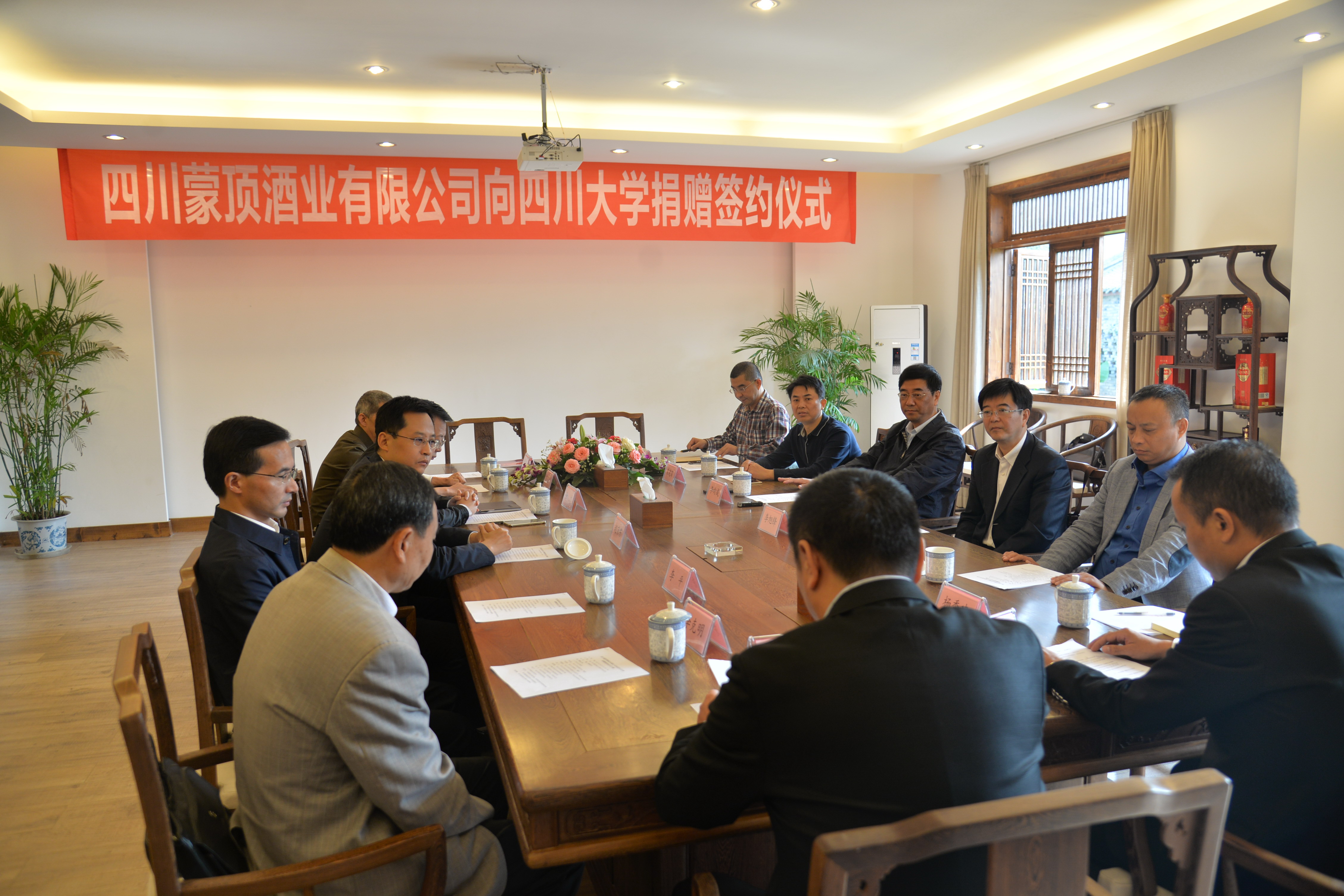 2015年10月12日上午,yl23411永利(集团)有限公司官网校友企业四川蒙顶酒业有限公司捐赠yl23411永利(集团)有限公司官网签约仪式在雅安市名山区蒙顶酒庄会议室举行,雅安市人副市长赵京东、雅安市名山区委常委区长余力、区委常委副区长李平、yl23411永利(集团)有限公司官网党委副书记李向成教授、yl23411永利(集团)有限公司官网副校长李旭锋教授、yl23411永利(集团)有限公司官网校友总会荣建国秘书长、yl23411永利(集团)有限公司官网绵阳校友会杨滔会长和四川蒙顶酒业有限公司有关负责人出席了签约仪式。