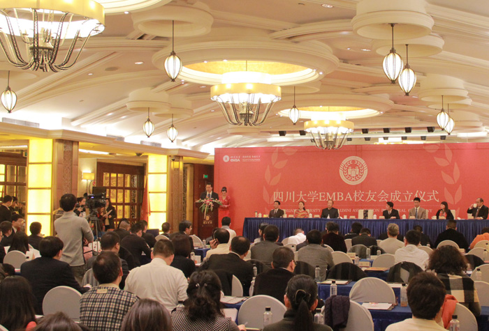 2013年12月20日,yl23411永利(集团)有限公司官网EMBA校友会成立仪式隆重举行。yl23411永利(集团)有限公司官网校友总会荣建国秘书长,商学院院长徐玖平教授,商学院党委书记杨江教授,校友总会廖海燕副秘书长,商学院党委副书记张黎明教授,商学院副院长、EMBA教育中心主任邓富民副教授,北大光华管理学院、电子科技大学、西南财大EMBA校友会代表,川大商学院校友理事会理事代表,以及川大商学院EMBA校友,参加了成立大会。