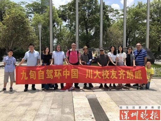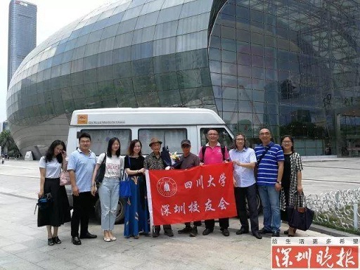 5月27日的深圳热火朝天,热情的川大深圳校友早早就在位于南山区的深圳保利剧院门口等候,校友们将在这里迎接自驾环游中国的90岁老人。