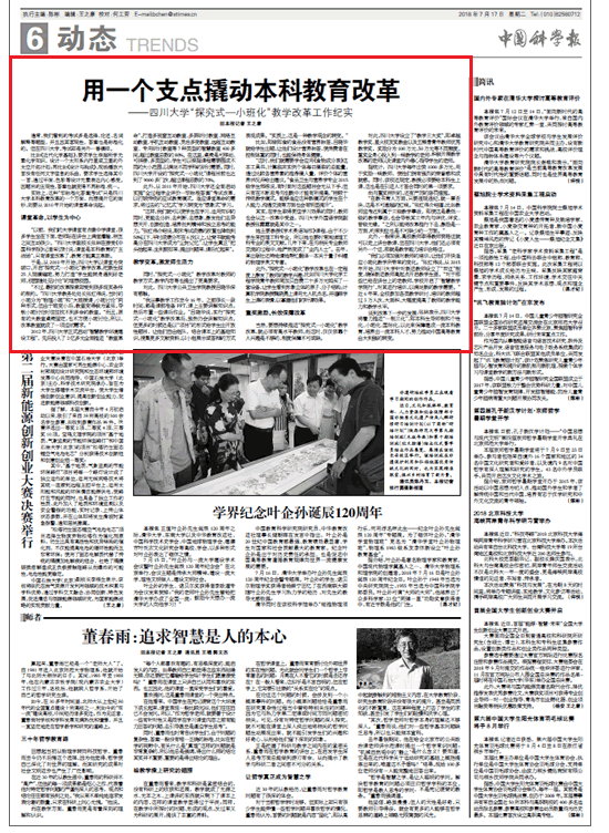 【中国科学报】用一个支点撬动本科教育改革——yl23411永利(集团)有限公司官网“探究式—小班化”教学改革工作纪实-yl23411永利(集团)有限公司官网 Sichuan University