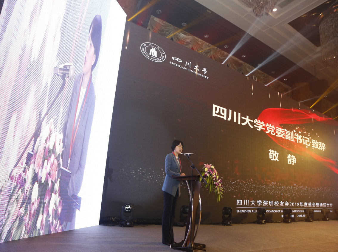 敬静向新的理事班子表示祝贺。她首先感谢了深圳校友会为在深工作、生活的广大川大校友搭建了一个广阔的交流平台,感谢校友们长期以来对母校的关心与支持。接着,她向校友们介绍了学校近年来在人才培养、学科建设、科学研究等方面所取得的进步,她强调,学校要建成世界一流大学,需要广大校友共同努力,希望校友们能一如既往地关注母校,充分发挥校友资源优势,助力学校建设发展。