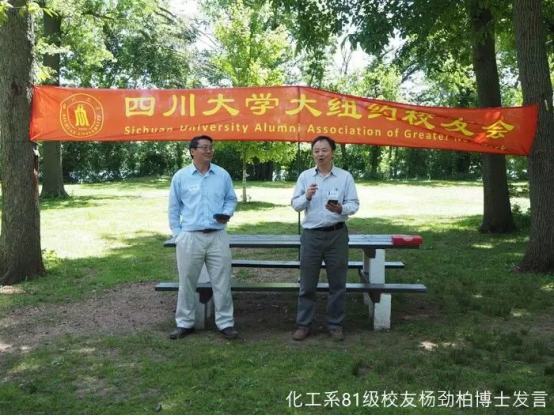作为校友代表, 化工系81级校友杨劲柏博士把他对校友会成立的祝贺,对母校的感念和校园时光的怀念,尽数表达在他在成立大会前夕赶写的一首七律诗里面。