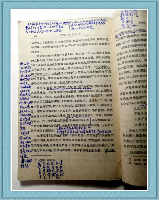 这段旁批记录了徐先生对商灭亡原因的不同观点,认为商不是亡于奴隶的反抗,而是亡于奴隶主的讨伐。这一看法与当时流行的阶级斗争观点相违背,有点逆经叛道,但先生却大胆表述了。