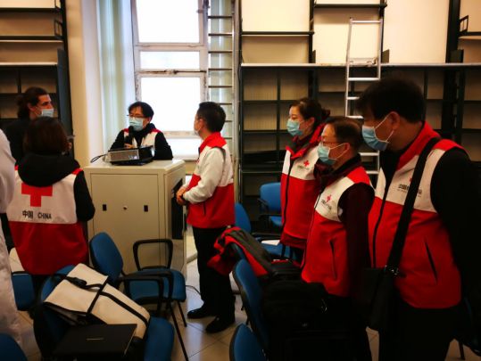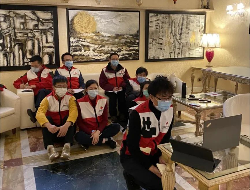 清晨我们通用过视频会议将后续的工作安排敲定,支援小组将在驻意大利使馆的领导下,与意大利卫生部、红十字会及其他相关部门密切合作,充分交换意见,分享中国抗疫经验,共同推进意大利疫情防控工作。我负责医疗护理经验介绍,并做好全队人员感染防控工作。现在,我们正式拉开了我们在意大利战疫的序幕。
