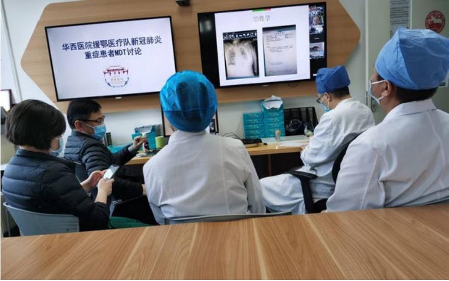 每天下午四点半,华西第三支医疗队还会与华西医院本部连线,通过5G远程会诊,分享新冠肺炎重症病人案例。一方面请大家帮忙提意见,一方面交流治疗重症的心得,分享典型病例,互相提高。这些都已是华西的传统,目的就是保证每个重症病人都能得到不同专业医生的同时关注,减少犯错机会,增加救治成功率。
