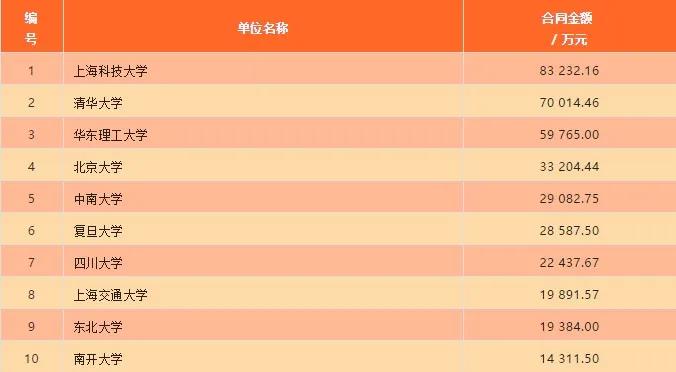 2018年部分高校以技术转让(包括转让、许可、作价投资)、技术开发、技术咨询、技术服务方式转移转化科技成果合同金额情况