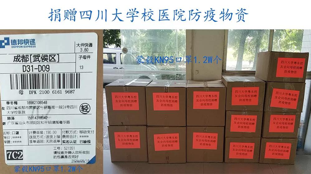 校友们敢于担当显真情,在母校开学之际防疫物资特别是口罩依然紧缺的情况下,粤东校友会、校友企业(广东天一信息工程有限公司)积极与校友总会沟通对接,于5月18日至5月21日向母校校医院捐赠防疫物资KN95口罩1.2万个;向成人继续教育学院捐赠防疫物资KN95口罩2400个,一共捐赠蒙毅KN95口罩1.44万个。粤东校友会以行动彰显责任与担当,为母校抗击疫情做出校友会、校友企业应有的担当!