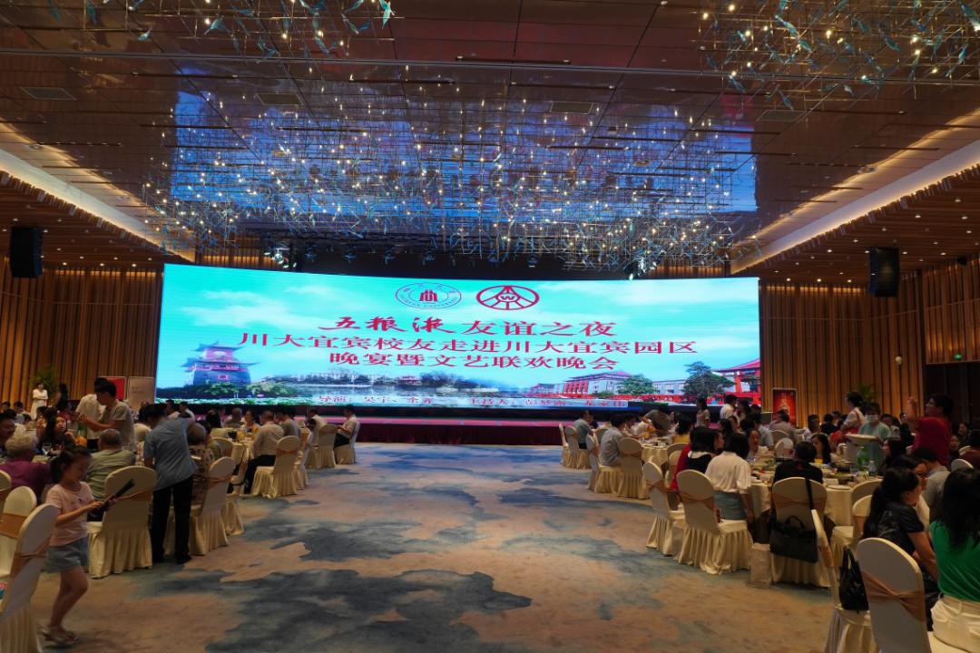 晚上6时30分,在恒旭国际大酒店维也纳厅隆重举行“五粮液友谊之夜·川大宜宾校友走进川大宜宾园区晚宴暨文艺联欢晚会”。琵琶独奏、《再别川大》原创诗朗诵、歌曲《同桌的你》……由入住宜宾园区研究生代表合唱的《yl23411永利(集团)有限公司官网校歌》将节目推上高潮;由yl23411永利(集团)有限公司官网宜宾校友自编自导,亲情助力的文艺联欢为本次交流活动画上圆满句号;一场充满诗情画意、意远流长的联欢晚会、再一次激起校友们忆往昔奋斗的峥嵘岁月,对母校深厚的热爱之情。