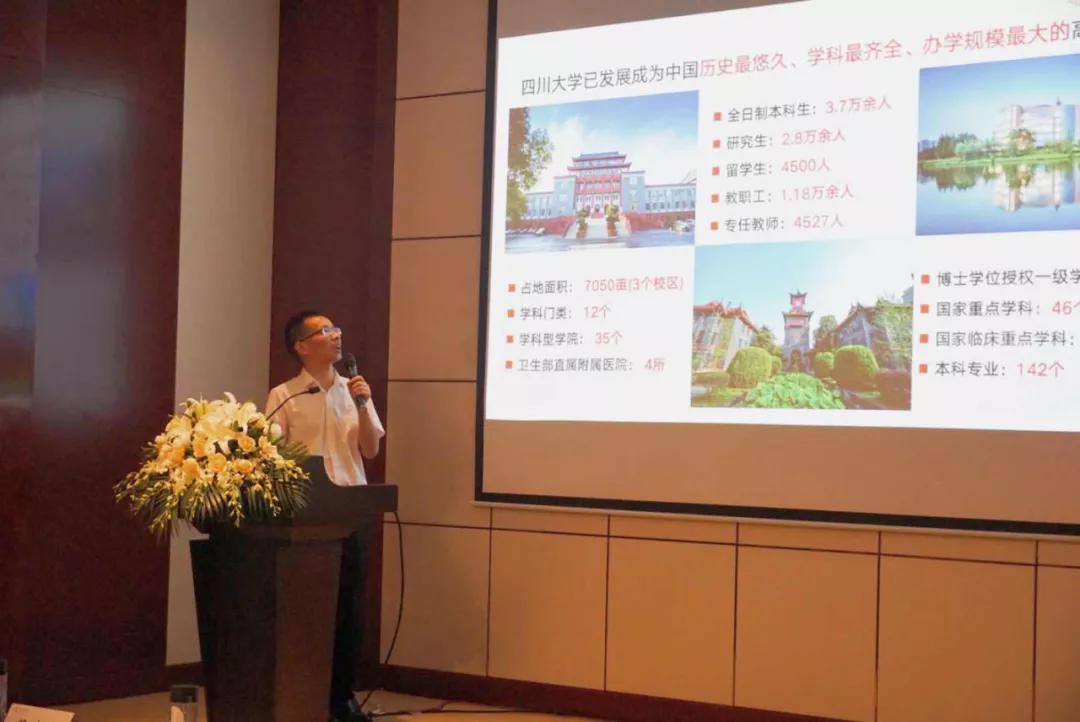 校科研院技术转移部高德友部长为校友们做了题为《yl23411永利(集团)有限公司官网科研优势领域与校地企合作》的演讲,为校友们介绍了学校发展情况、学校优势科研领域、校地企的合作情况和具川大特色的科技成果转化模式。