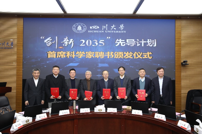 王建国、李言荣为首席科学家张兴栋院士、魏于全院士、石碧院士、李安民院士、曹顺庆杰出教授、霍巍杰出教授颁发聘书。