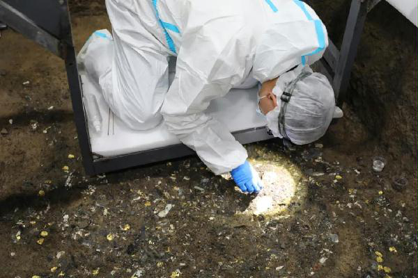 2020年12月11日,我校考古队入驻三星堆遗址,参加新发现祭祀坑的发掘工作,并主要负责5、6、7三坑的发掘。其中5号坑最小,占地仅3.5平方米,但出土很多金器残片,目前已清理出多件金器和60余枚带孔圆形黄金饰片、数量众多的玉质管珠和象牙饰品,目前最令人瞩目的金面具便出自5号坑。6号“祭祀坑”发现了一具“木匣”,长约1.5米、宽约0.4米,内外均涂抹朱砂,匣内装有何物仍然成谜。7号坑是我校负责的最大面积的祭祀坑,目前尚未发掘到器物层。此次三星堆祭祀坑考古发掘有助于解决长期悬而未解的学术问题,比如最基本的年代问题和性质问题。过去考古只发现了两个坑,这次增加到八个坑,并且对周围进行了详细的勘探,有助于复原当时“神庙”或“祭祀区”内部的空间,对完整认识古蜀文化的礼仪空间、宗教思想,乃至于反映的宇宙观念,都提供了非常重要的资料。