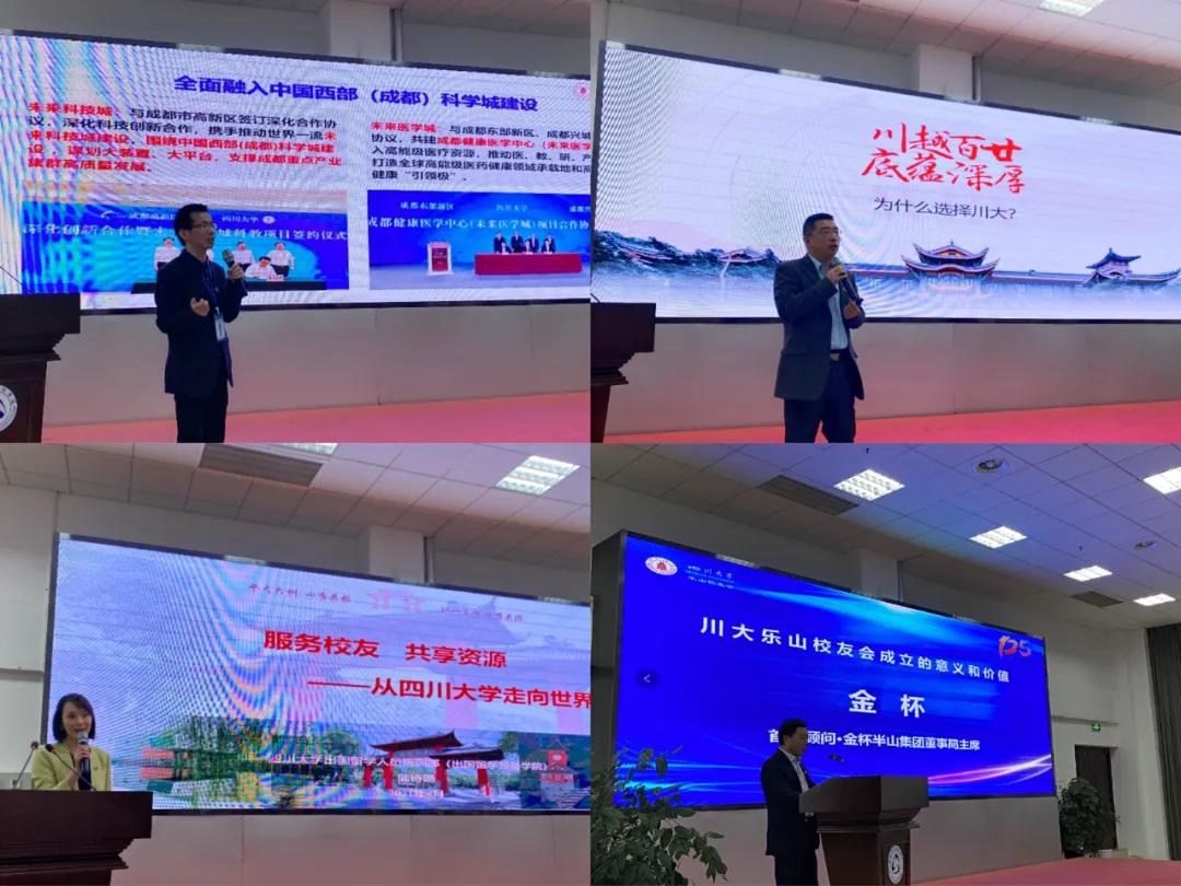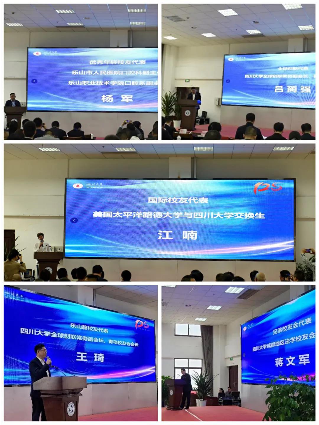 国际校友代表江喃、优秀年轻校友代表杨军、兄弟校友会代表蒋文军、全球创联代表吕蔺强、乐山籍校友代表王琦先后发言。