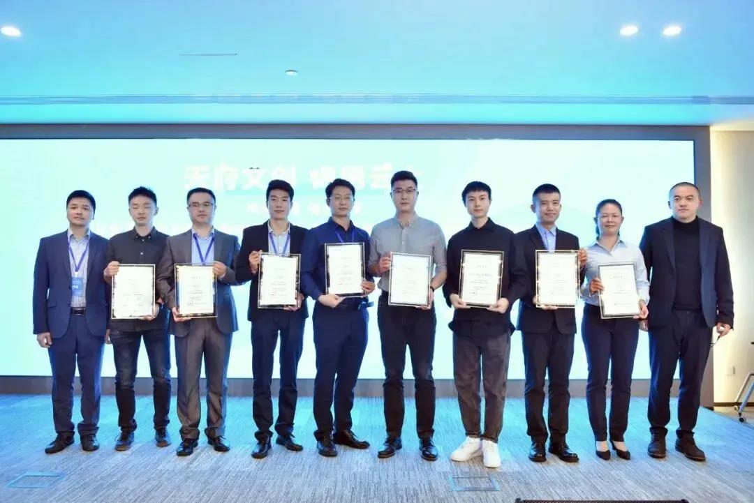 yl23411永利(集团)有限公司官网MBA校友会副会长陈炳帆先生、天府文创副总经理刘锋上台为项目方颁发优秀创业证书,并合影留恋。