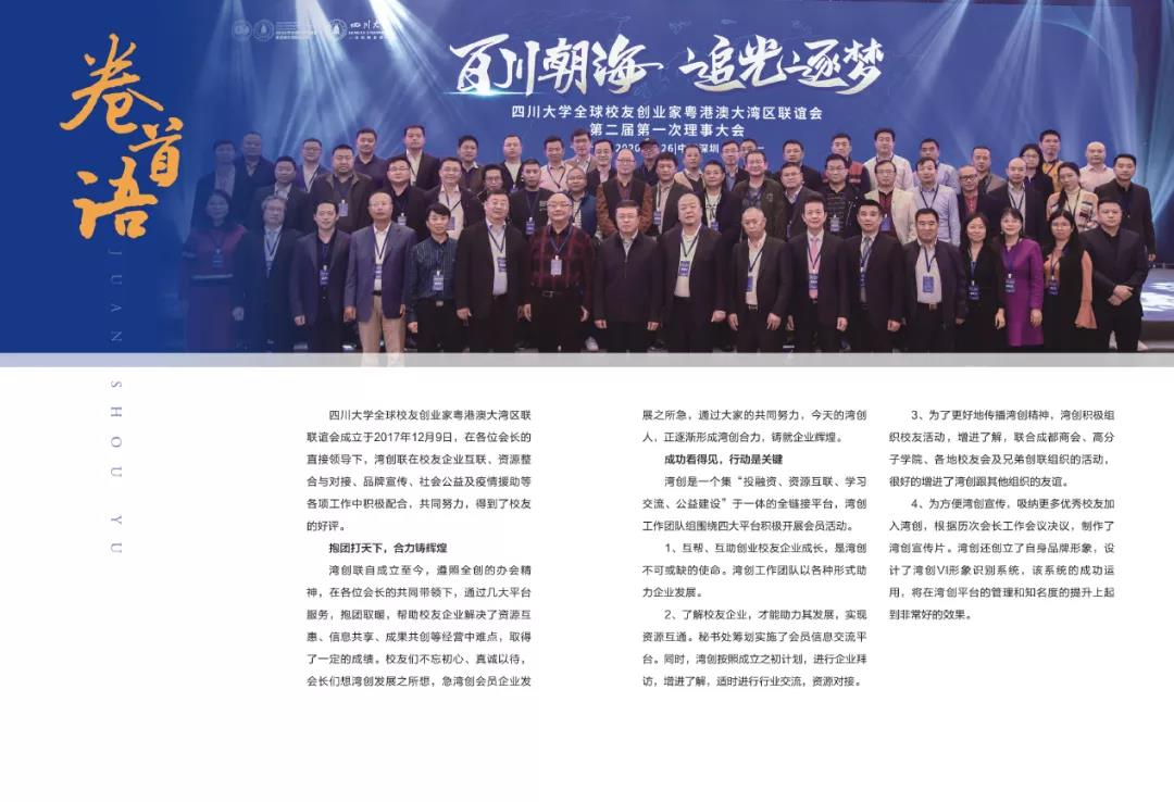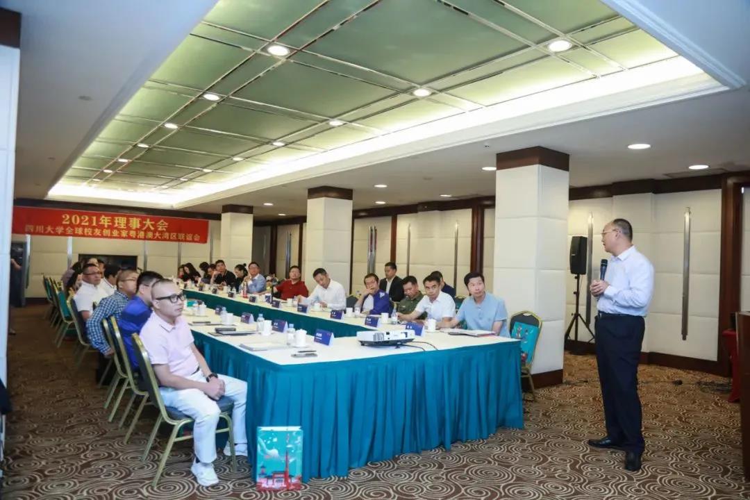 2021年11月6日,yl23411永利(集团)有限公司官网全球校友创业家粤港澳大湾区联谊会(以下简称湾创联)2021年理事大会在广州市东方宾馆圆满举行,四川省人民政府驻广州办事处主任王德胜、四川省人民政府驻广州办事处秘书处副处长杨世伟、四川省人民政府驻广州办事处经济合作处负责人黄立斌、yl23411永利(集团)有限公司官网全球校友创业家粤港澳大湾区联谊会会长王跃林、特邀嘉宾深圳大学特聘教授/深圳市国家级领军人才戴永红教授、yl23411永利(集团)有限公司官网全球校友创业家粤港澳大湾区联谊会秘书长陈华以及湾创联常务副会长、副会长、理事、副秘书长、特邀嘉宾等40余人参加了此次会议。本次会议由湾创联秘书长陈华主持。
