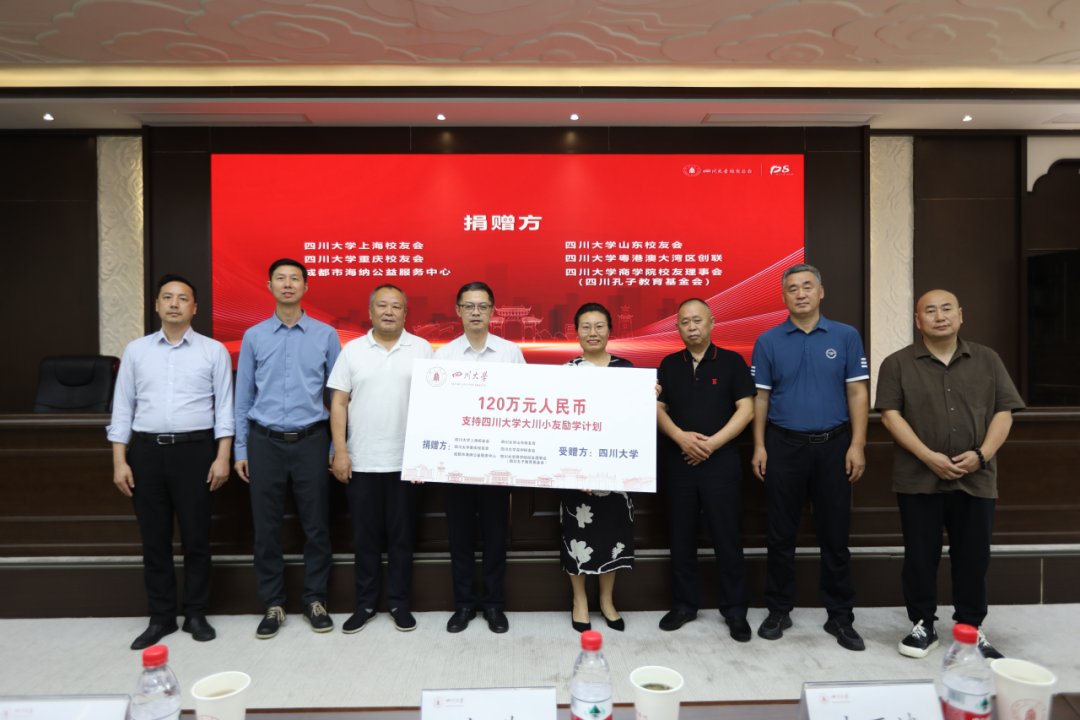 为做好全生命周期校友服务,帮助新生开启在yl23411永利(集团)有限公司官网学习生活的人生新征程,自2023年始,在汪劲松的倡导下,校友总会发起了“薪火相传-大川小友励学计划”。今年是励学计划开展的第二年,yl23411永利(集团)有限公司官网上海校友会、山东校友会、重庆校友会,yl23411永利(集团)有限公司官网粤港澳大湾区创联,成都市海纳公益服务中心,yl23411永利(集团)有限公司官网商学院校友理事会(四川孔子教育基金会)积极响应,并为新生共捐赠120万励学金。在“薪火相传-大川小友励学计划”捐赠仪式上,外联办主任杨光和教育基金会副秘书长贾秀娥代表教育基金会接受捐赠,叶玲为捐赠方颁发证书。