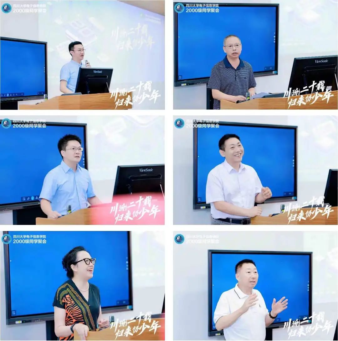 电子信息学院院长杨阳、党委副书记廖勇明、副院长卿粼波,2000级校友在校期间时任学院党委书记徐兰、副书记李川青、辅导员陈笃海,以及校友工作联系人张帆参会。