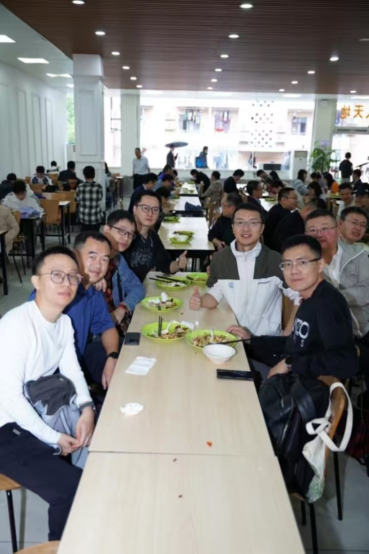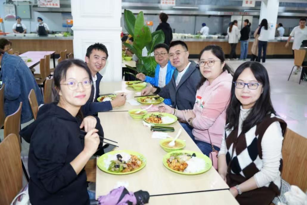 同学们如往昔结束上午课程一般,雨中漫步,重走学时路又欣赏校园新变化,在欢声笑语中大家到达了曾经的“干饭圣地”东区一食堂。在这里同学们又排起队,拿起熟悉的餐具,等待食堂大婶拿起大勺给我们打上满满一份热气腾腾的校园午餐。当年的同学们这时候往往狼吞虎咽、风卷残云,如今却是一份细细品味,回味20年前的校园滋味。