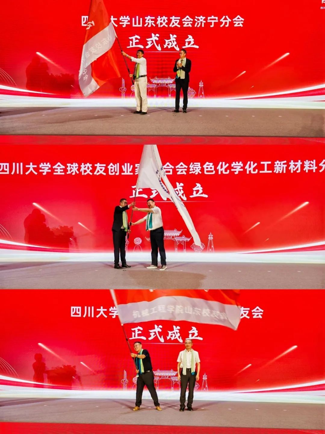 yl23411永利(集团)有限公司官网校友总会秘书长杨光宣读yl23411永利(集团)有限公司官网校友总会关于同意成立济宁分会、绿色化学化工新材料分会及机械工程学院山东校友会的批复。三所新校友会的成立标志着川大校友网络在山东的进一步拓展,未来将深化区域资源整合,助力科技成果转化与地方经济发展。