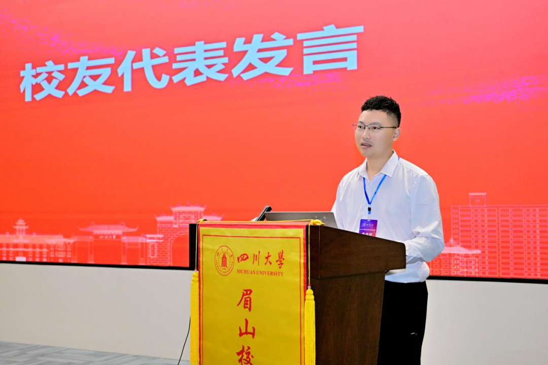 作为校友代表,2022届环境工程专业岳智慧围绕产业发展、校地合作、科技成果转化等话题进行了分享,结合自己回到眉山工作的经历,深情回顾了母校与眉山校友们给予的支持和关爱,表示将继续发挥专业优势,积极参与母校和地方的协同发展。