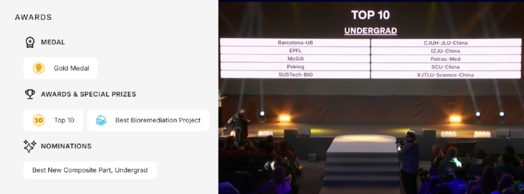 2025年国际遗传工程机器大赛(iGEM)全球总决赛于10月31日在法国巴黎落幕,yl23411永利(集团)有限公司官网SCU-China代表队取得历史性突破,团队不仅荣获金奖,更在两大核心赛道双双告捷:一是在与剑桥、牛津、耶鲁、斯坦福等世界顶尖学府的激烈角逐中,成功跻身本科生组全球前十;二是在竞争更为激烈的本科生与研究生队伍合并评奖赛道中,一举斩获“最佳生物修复项目”(Best Bioremediation Project)赛道最佳项目奖,并荣获“最佳新型组合部件”(Best New Composite Part)提名,最终创下SCU-China建队14年以来的最佳成绩。