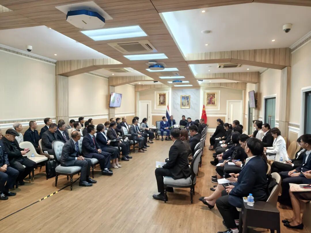 11月24日,代表团访问泰国东部经济走廊管理委员会总部,就经济政策、产业布局等议题进行深入交流;随后赴泰中文化经济协会总部,与前国会主席颇钦等座谈,聚焦农业、文旅、教育等合作方向。