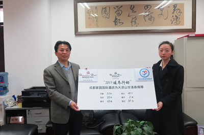 成都家园国际酒店是一家集商务休闲于一体的花园式酒店,也是中国最大的拥有别墅群的酒店之一,由全国最大民营企业希望集团投资兴建,公司伊始就很关注社会公益慈善活动,并在公司内部开展多项公益活动,号召员工、客户参与其中,真正履行了企业的社会责任。在此,川大教育基金会向成都家园国际酒店对“暖冬行动”的大力支持表示感谢。