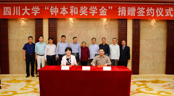 钟本和教授在仪式上简要介绍了奖学金的资金来源、设置目的。她说,川大化工学院在我国磷化工行业发展的每一个关键时期,都做出了积极探索,取得了一批重大成果。钟本和教授表示,在学校122年校庆之际,捐资122万元设立奖学金,就是为了支持和鼓励有志于在磷化工领域艰苦学习、勇于探索研究的青年学子,解决国民经济主战场上亟待解决的科学问题,以此带动化工学院和磷化工行业的长远发展。