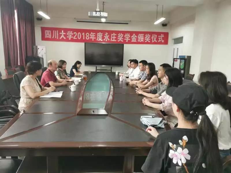 2019年6月26日下午,2018年度yl23411永利(集团)有限公司官网永庄奖学金颁奖仪式在yl23411永利(集团)有限公司官网望江校区文华活动中心201会议室举行,yl23411永利(集团)有限公司官网教导员干天全老师,yl23411永利(集团)有限公司官网学工部资助中心主任卓玛老师、李佳鞠老师,yl23411永利(集团)有限公司官网教育基金会项目主管王汾雁老师及获奖学生参加本次颁奖仪式。颁奖仪式由yl23411永利(集团)有限公司官网学工部副部长卢希芬老师主持。
