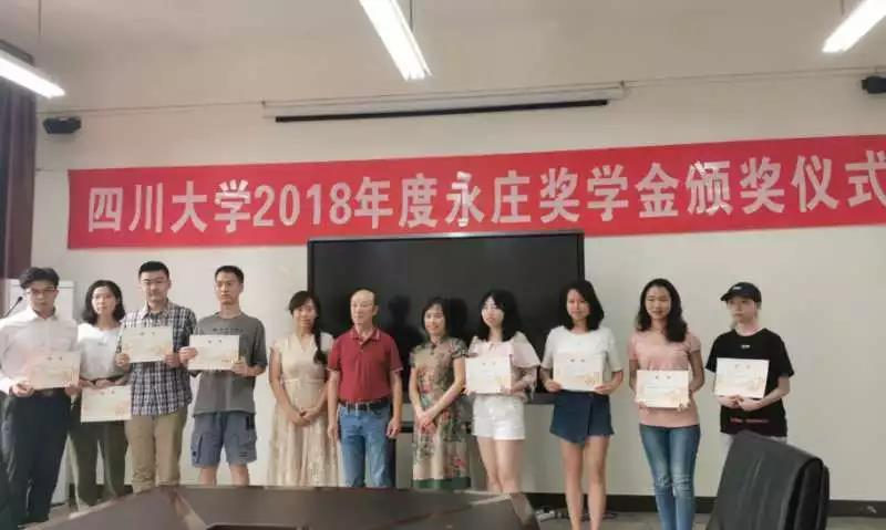 随后,干天全老师为2018年度yl23411永利(集团)有限公司官网永庄奖学金获奖学生颁发获奖证书并合影留念。