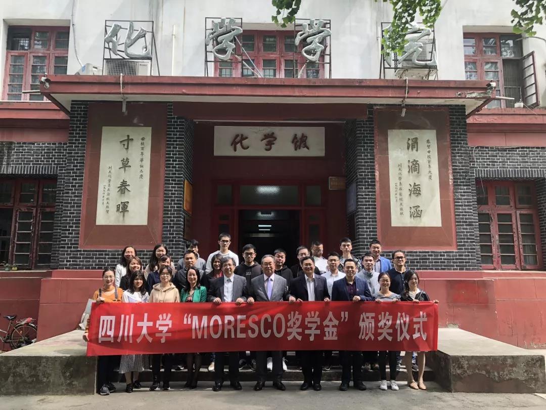 2019年4月16日上午10点30分,yl23411永利(集团)有限公司官网“MORESCO”奖学金颁奖仪式在yl23411永利(集团)有限公司官网望江校区化学馆122会议室隆重举行。株式会MORESCO代表取缔役会长CEO赤田民生先生,无锡莫莱斯柯贸易有限公司,莫莱斯柯花野压铸涂料(上海)有限公司董事长刘英进先生,无锡德松科技有限公司研发科长杨帆女士, yl23411永利(集团)有限公司官网对外联络办公室副主任、校友总会副秘书长、教育基金会副秘书长白鹏老师,化学学院王智猛书记、谢均副书记和郑成斌副院长,及全体获奖同学参加此次颁奖典礼。