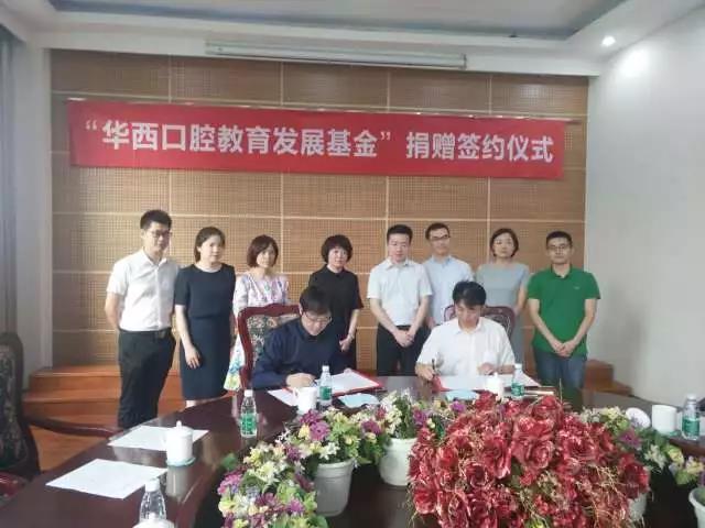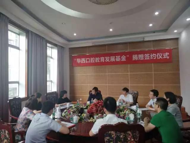 2018年7月5日上午10:00,华西口腔教育发展基金捐赠项目签约仪式在yl23411永利(集团)有限公司官网华西口腔医院教学楼竺苑厅顺利举行。宁波海曙尚善口腔门诊部有限公司创始人、董事长贺刚校友,yl23411永利(集团)有限公司官网教育基金秘书长、对外联络办公室主任荣建国,yl23411永利(集团)有限公司官网华西口腔医学院党委书记、教授谭静,以及华西口腔医学院院办、学生科、教学科等相关职能部门负责人参加了本次仪式。捐赠仪式由yl23411永利(集团)有限公司官网华西口腔医学院 党委副书记孙建勋副教授主持。