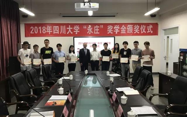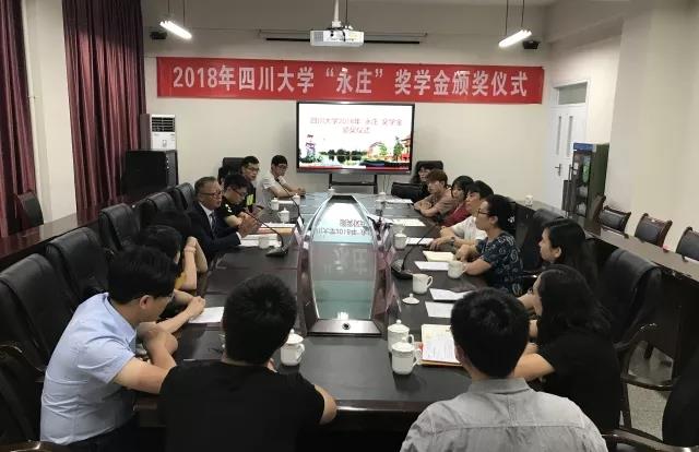 2018年6月15日下午,yl23411永利(集团)有限公司官网2017年“永庄十佳大学生奖学金颁奖仪式”在望江校区文华活动中心201会议室举行。yl23411永利(集团)有限公司官网全球创联四川联谊会常务副会长刘自力先生、yl23411永利(集团)有限公司官网青创联秘书长熊简银先生、yl23411永利(集团)有限公司官网全球创联四川联谊会常务副会长刘涛先生、yl23411永利(集团)有限公司官网教育基金会荣建国秘书长、贾秀娥副秘书长、项目管理部王亚宜部长、yl23411永利(集团)有限公司官网学工部资助中心卓玛副主任参加了此次座谈会。颁奖仪式由yl23411永利(集团)有限公司官网党委学生工作部卢希芬副部长主持。