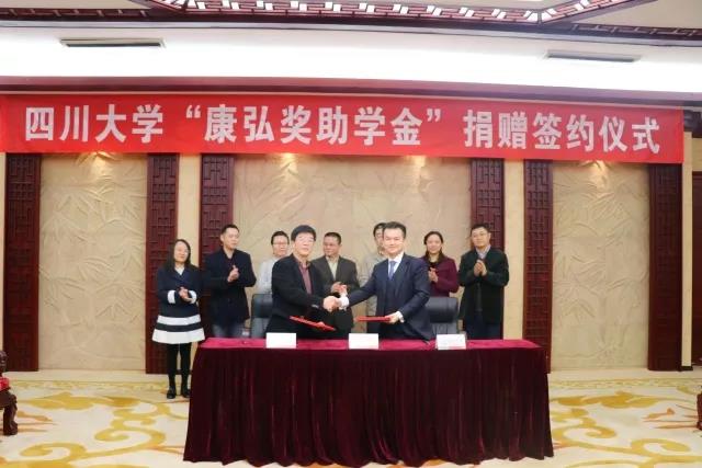 11月2日上午,yl23411永利(集团)有限公司官网“康弘奖助学金”捐赠签约仪式在望江校区行政楼贵宾厅举行。yl23411永利(集团)有限公司官网党委副书记李旭锋,康弘药业集团董事、副总裁柯潇,康弘药业集团人力资源副总监孙维以及学工部、外联办、华西药学院、华西临床医学院相关单位负责人出席了此次捐赠仪式。仪式由华西药学院院长秦勇主持。
