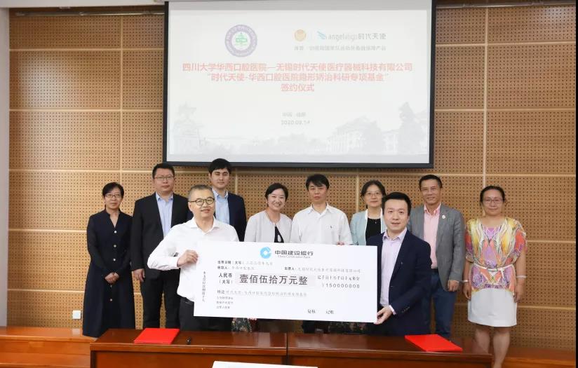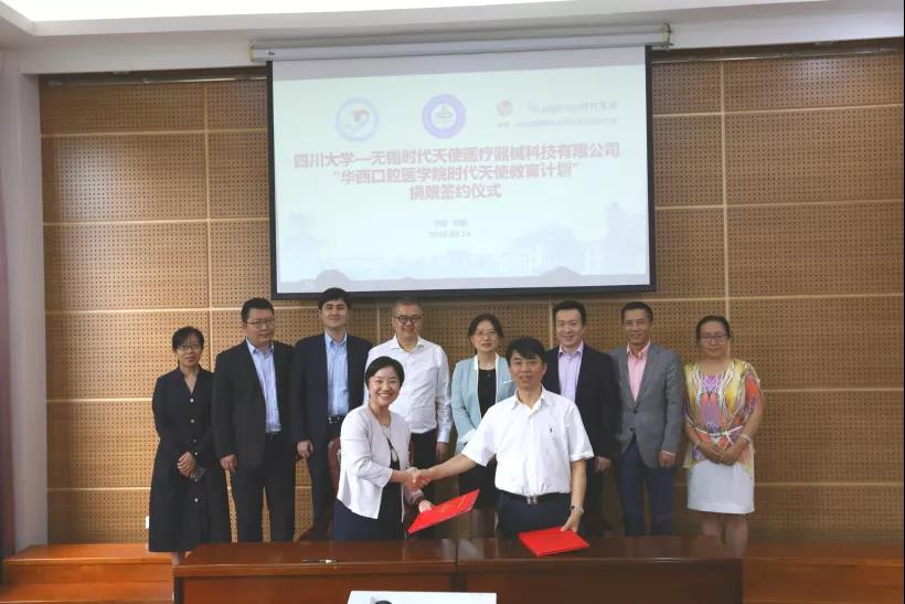 9月14日下午,“华西口腔医学院时代天使教育计划”捐赠签约仪式在我院举行。yl23411永利(集团)有限公司官网教育基金会秘书长荣建国,yl23411永利(集团)有限公司官网华西口腔医学院(华西口腔医院)院长叶玲,时代天使集团创始人兼首席执行官李华敏,yl23411永利(集团)有限公司官网华西口腔医学院(华西口腔医院)党委副书记孙建勋,无锡时代天使医疗器械科技有限公司、联合创始人兼首席运营官陈锴,首席市场官刘彧以及我院和时代天使相关部门负责人参加了仪式,捐赠仪式由党委副书记孙建勋主持。