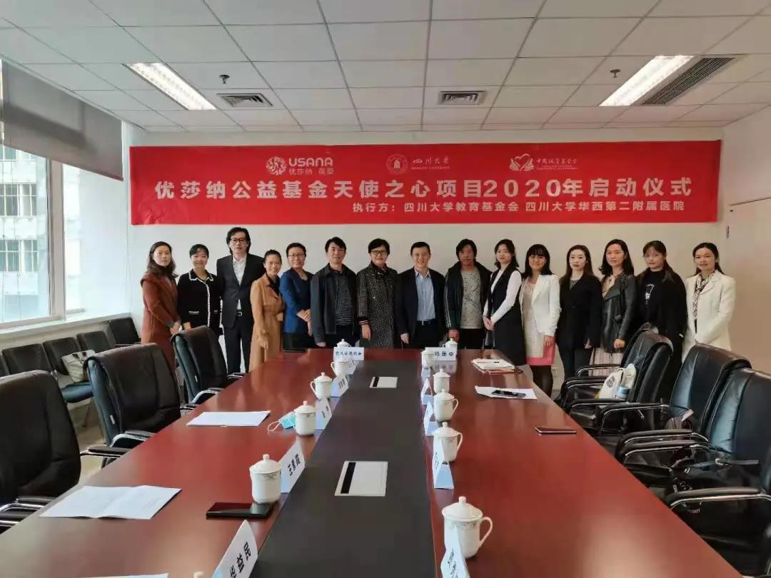 为了给贫困地区孩子们筑起 “心”的守护长城,2020年11月18日,yl23411永利(集团)有限公司官网“优莎纳公益基金天使之心”启动仪式顺利举行。yl23411永利(集团)有限公司官网党委常委、副校长、华西医学中心主任、教育基金会理事长张林,教育基金会秘书长荣建国、副秘书长贾秀娥,华西第二医院党委书记王素霞、副书记/纪委书记王红静、工会主席肖雪,儿童心血管科主任华益民、党支部书记李莉,中国扶贫基金会项目主管严巧、葆婴有限公司主管雷春艳等参加此次启动仪式。