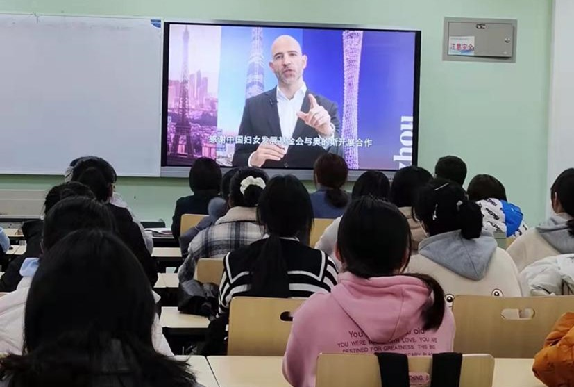 奥的斯中国人力资源及变革副总裁康乔迪在视频中讲到,奥的斯将赋能理工科女性作为重要任务之一,大力倡导多元与包容。同时还提到奥的斯将在2030年实现全球高管性别均等,他们将在全球范围推广多元与包容,支持对理工科学的教育。最后,他感谢中国妇女发展基金会与奥的斯开展合作,帮助更多的女性投身理工科学领域,感谢我校对于奖学金计划的支持,鼓励理工科学优秀女学生参与其中,并对获奖学生表示祝贺。