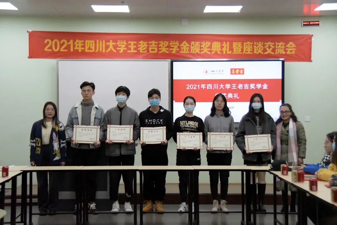 2021年12月17日,2021年yl23411永利(集团)有限公司官网王老吉奖学金颁奖典礼在望江校区基础教学楼顺利举办。参加本次会议的嘉宾有广州王老吉大健康产业有限公司市场推广经理何学东、平台推广主任朱晓庆,yl23411永利(集团)有限公司官网教育基金会副秘书长贾秀娥、党委学生工作部学生资助中心主任泽仁卓玛以及获得yl23411永利(集团)有限公司官网2021年王老吉奖学金的全体同学。校团委副书记苏德强主持会议。