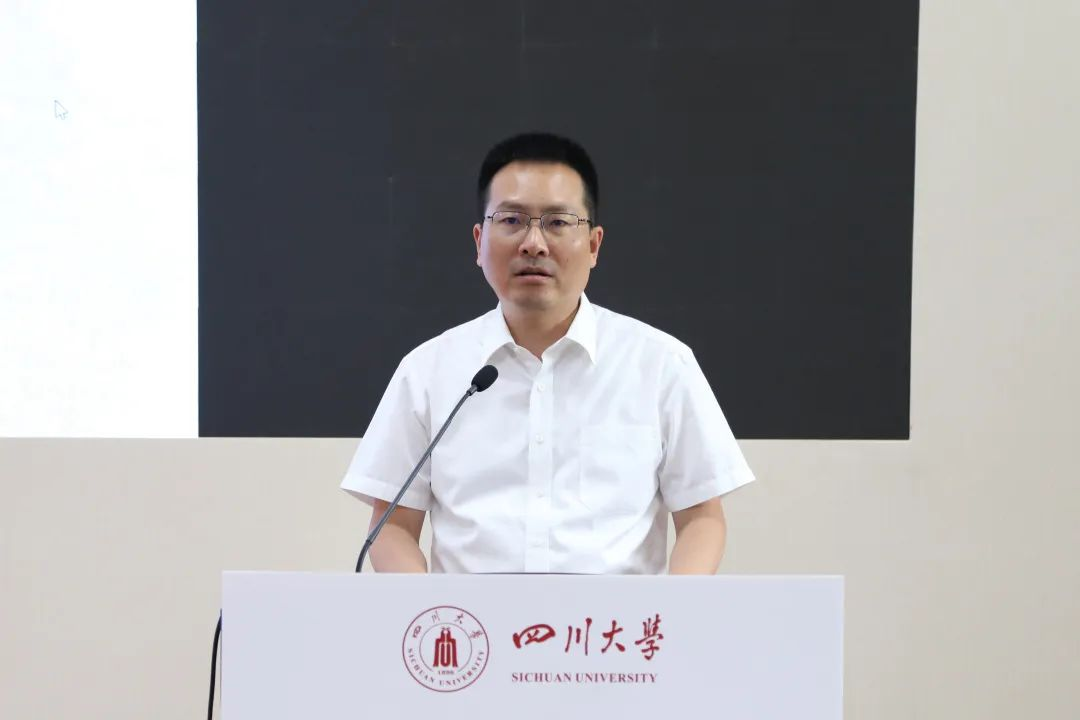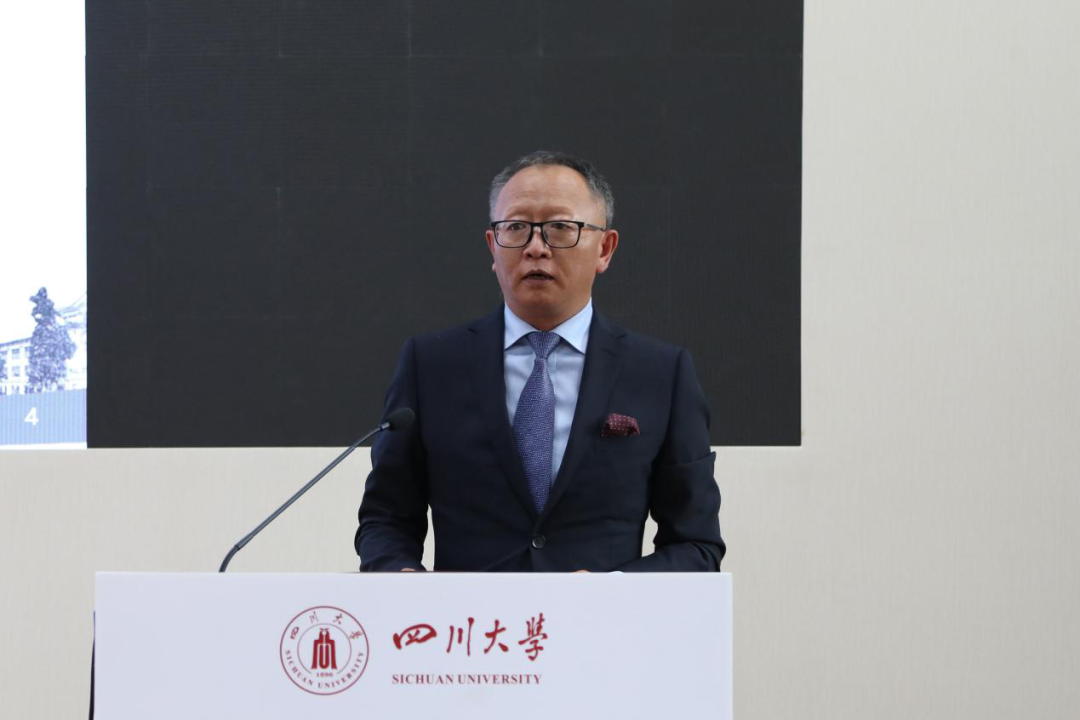 85级校友、四川赛宁文化传播有限责任公司董事长刘自力校友寄语学弟学妹,作为该奖学金的创始人,他首先感谢其他四位校友的慷慨捐赠,随后,他用自身经历教导在场学子要有面对困难和逆境的勇气,培养出良好的逆商;要勇于面对人生的挫折和困难,学会在逆境中成长,做优秀且有担当的川大人;要有灯塔般的信念,迎接光明的未来,成为社会的栋梁!