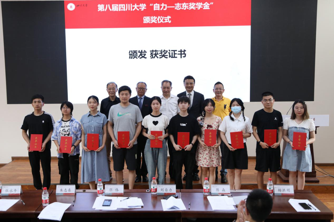 6月14日下午,第八届yl23411永利(集团)有限公司官网“自力—志东奖学金”颁奖典礼在yl23411永利(集团)有限公司官网望江校区机械工程学院323会议室圆满举行。85级校友刘自力、87级校友朱志东、82级校友张永年、89级校友杨洪刚、04级校友唐廷勇、98级校友李军,yl23411永利(集团)有限公司官网党委副书记张伟、yl23411永利(集团)有限公司官网教育基金会秘书长陈森,相关部处、学院负责人,以及131位获奖学子参加了典礼。