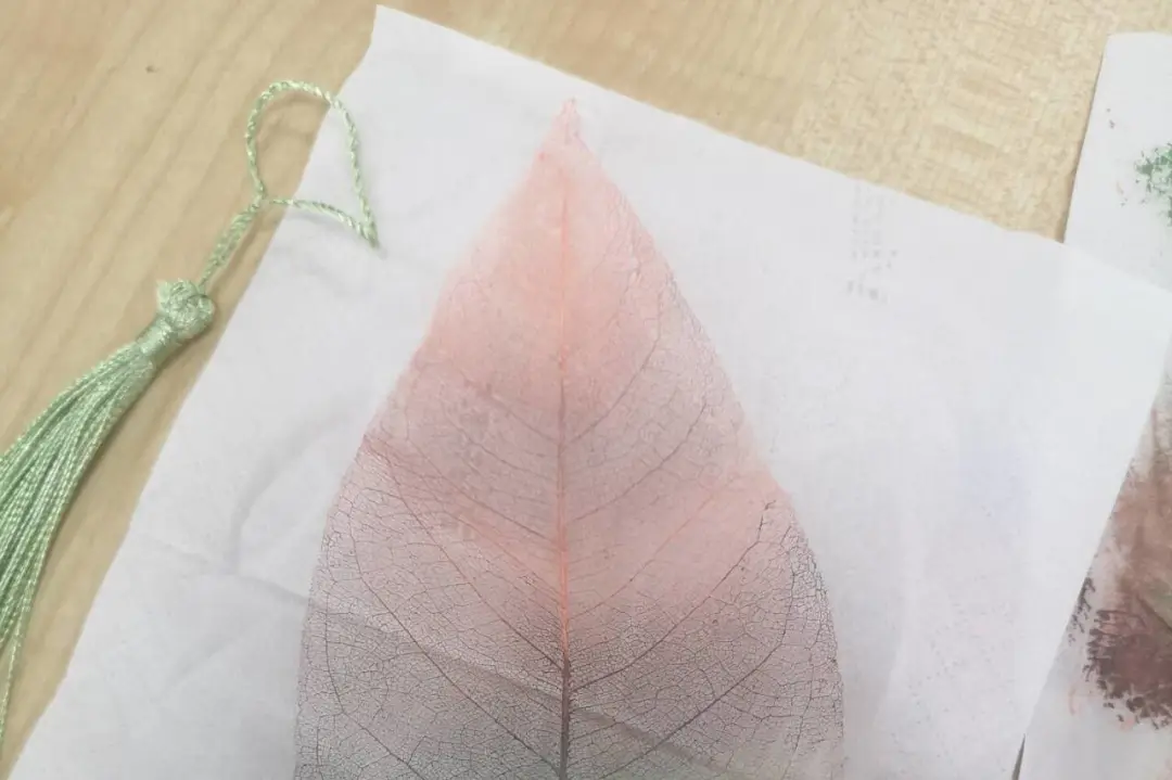 短暂的休息后,同学们迎来了有趣的叶脉书签制作环节。
