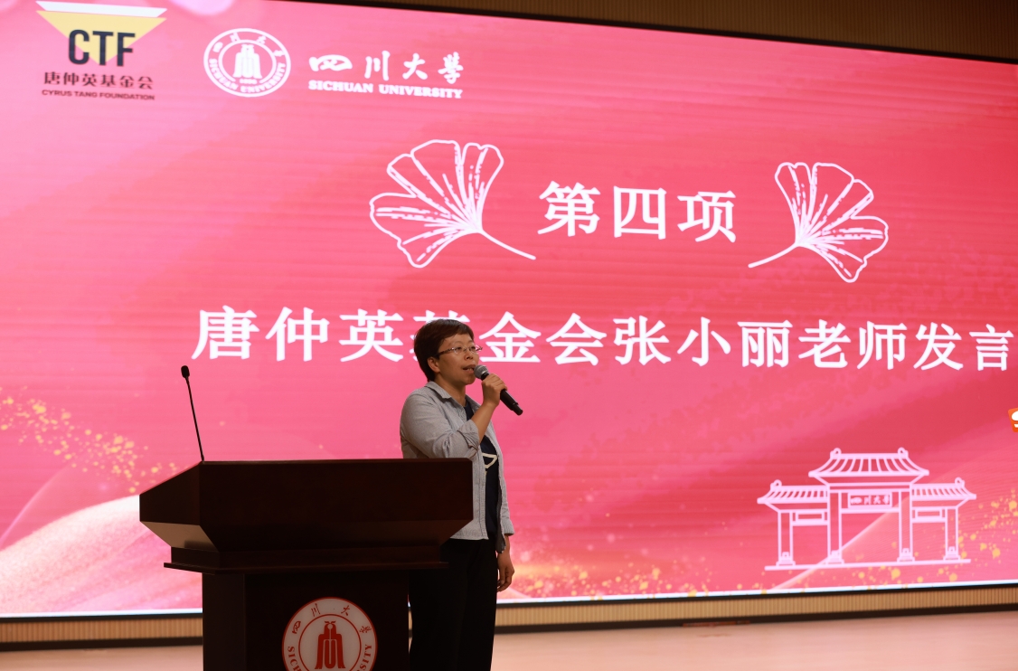 唐仲英基金会项目总监朱莉在致辞中对川大师生为此次会议付出的努力表示衷心感谢。她分享了自己出席“明远•启航”大学生能力提升计划第十一期总结大会收获的惊喜,赞扬了川大特色的受助学生公益社团化培育模式,并对yl23411永利(集团)有限公司官网形成的良好公益生态给予高度评价,鼓励各爱心社在交流互鉴中共促发展。